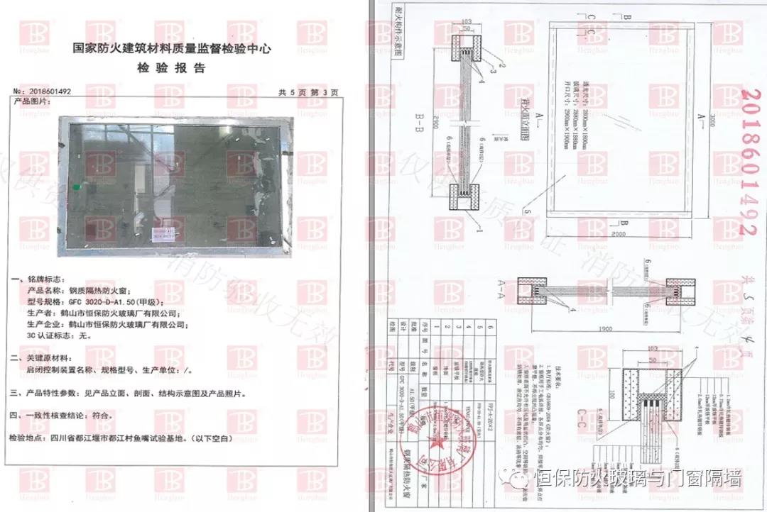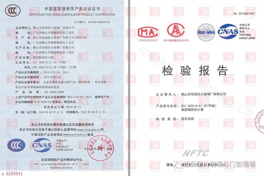 鶴山恒保經(jīng)過多年努力,終于解決這一行業(yè)難題:成功通過超大甲級防火窗國家CCC認證,3000mmX2000mm超大尺寸版面,整窗都能滿足防火完整性和防火隔熱性1.5小時的要求,既符合建筑設計防火規(guī)范的要求,又具有窗的通透性,美觀實用。完美解決了地鐵高鐵消防控制室超大甲級防火觀察窗合法化的問題!