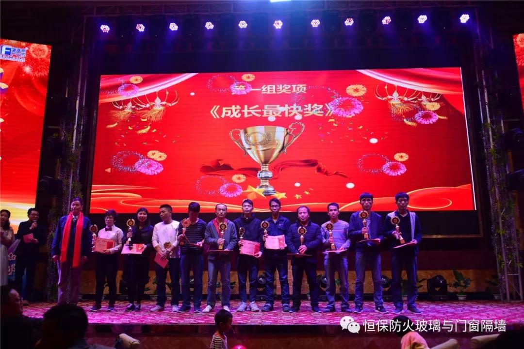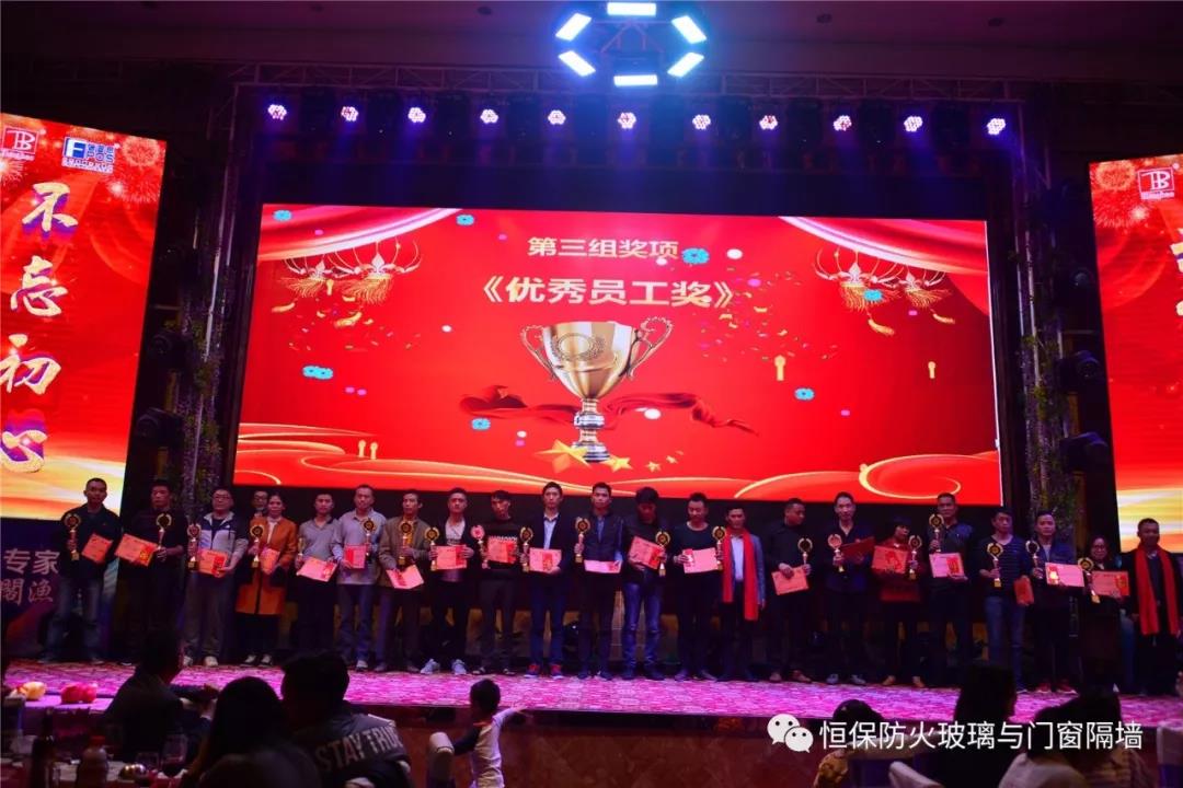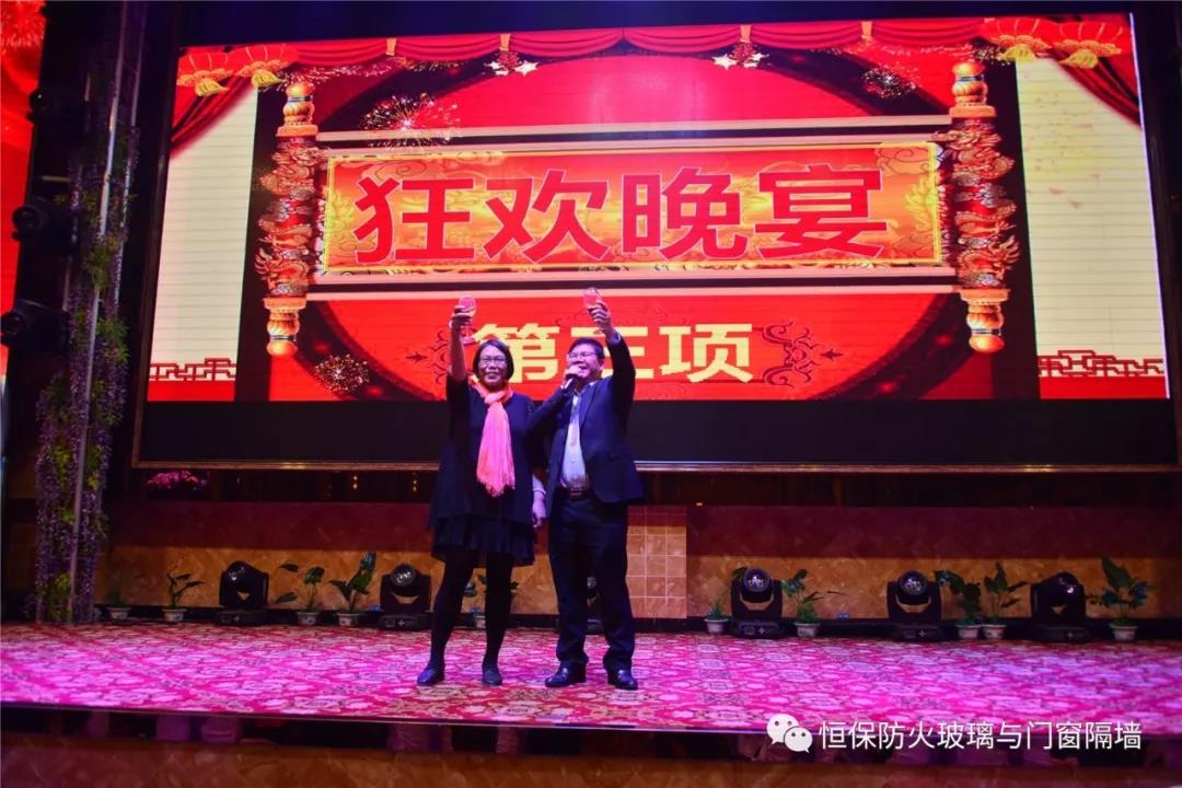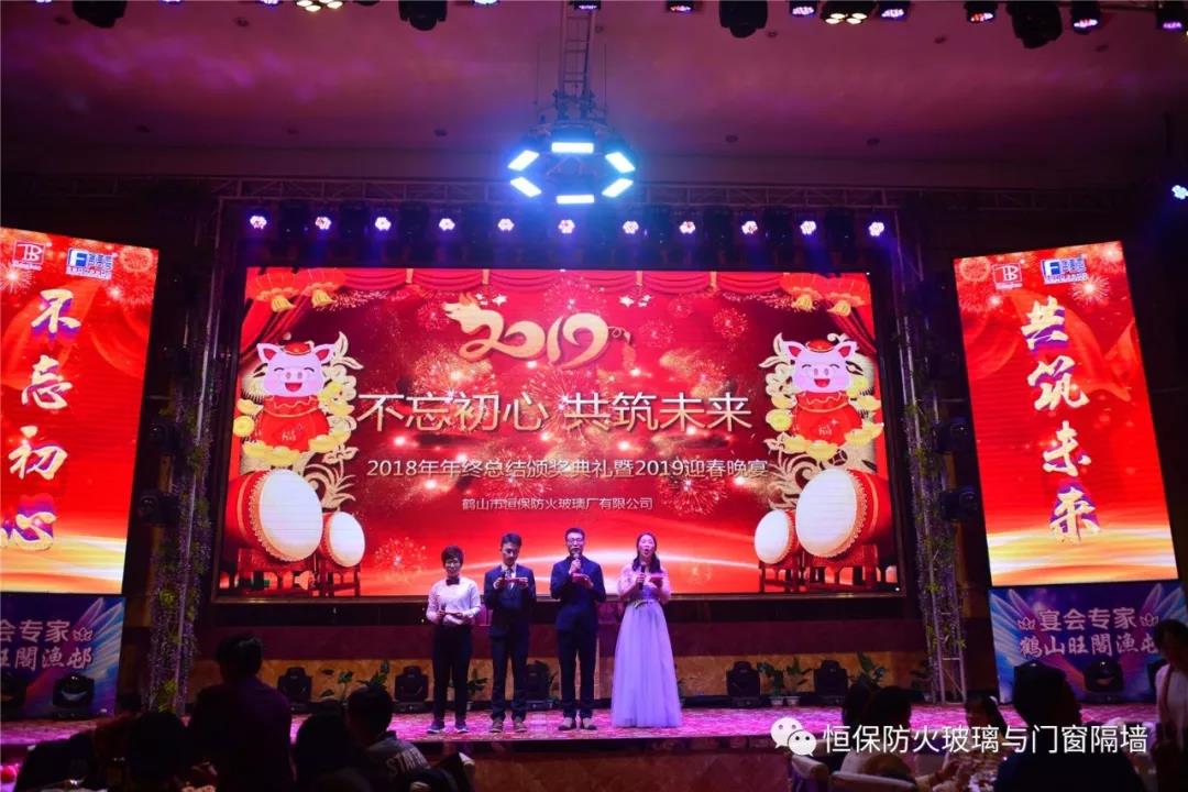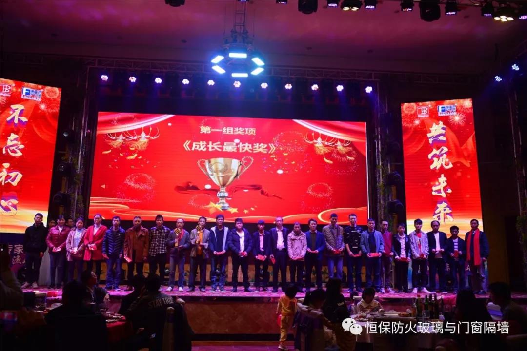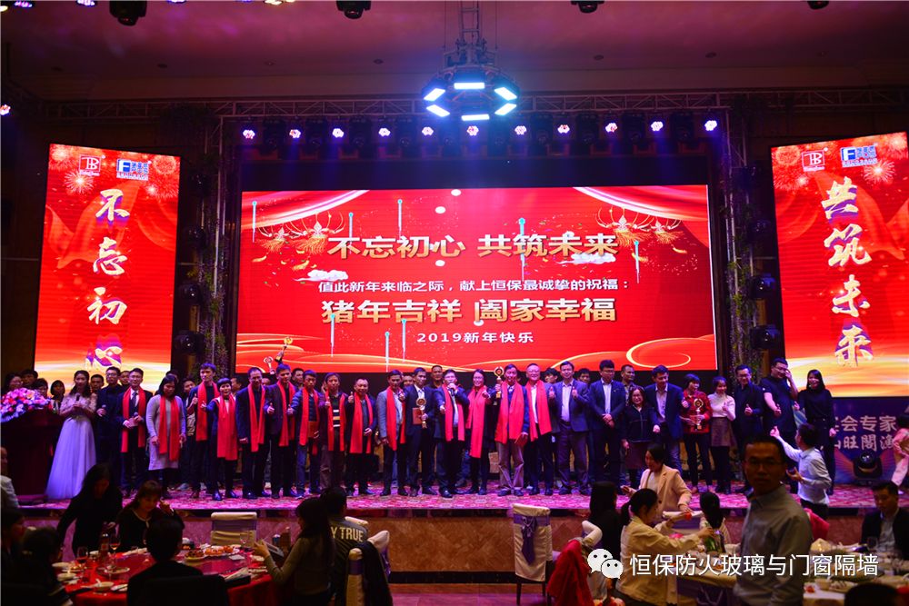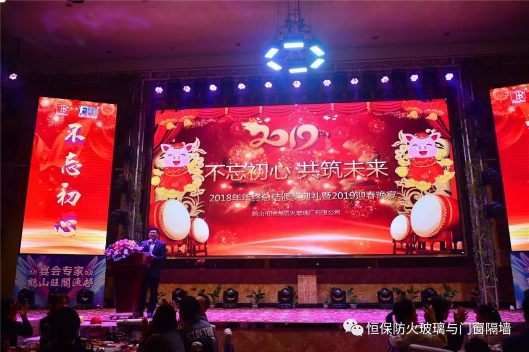 19:30分,恒保年會在鼓舞飛揚中拉開了帷幕,首先是恒??偨?jīng)理陳沃林先生做年終致辭,陳總回顧了2018年所取得的成績與不足,并提出了2019年恒保要全力以赴,不忘初心,繼續(xù)奮斗,再創(chuàng)佳績的戰(zhàn)略方針。2018年是恒??缭桨l(fā)展的一年。全體恒保家人,團結一心,艱苦奮斗,全力實現(xiàn)了公司既定的年度目標,同比各項重要指標增長逾80%。2018年我們大力引進新設備,開發(fā)新產(chǎn)品10多項,產(chǎn)品通過國家檢測20多項 ,至此,恒保出品已擁有37個3C認證,158份檢驗報告,成為行業(yè)內公認通過國家檢驗、認證最多的防火玻璃門窗企業(yè);2018年在行業(yè)各類權威獎項評比中,榮獲“全國鋁門窗幕墻展 年度星品獎”、榮獲“新玻網(wǎng) 門窗玻璃十強企業(yè)”、陳沃林總經(jīng)理榮獲鶴山市工商聯(lián)系統(tǒng)“工匠之星”稱號、陳沃林總經(jīng)理榮獲第五屆中國玻璃行業(yè)“玻璃工匠”稱號、榮獲第三屆建筑門窗金軒獎“最具創(chuàng)新力配套產(chǎn)品”、榮獲第三屆建筑門窗金軒獎“最具發(fā)展?jié)摿ζ髽I(yè)”、榮獲中國門窗幕墻行業(yè)“科技進步推動獎”等十多項獎項。2019年我們將持續(xù)優(yōu)化各部門管理,提高員工工作技能、提高生產(chǎn)管理水平、提高生產(chǎn)效率、提高綜合管理能力,減少物料損耗,減少出錯率。加強精密型材、新型防火門窗的開發(fā),滿足不同客戶的需求。2019年恒保上下一心、同心協(xié)力、不忘初心,共筑未來,為實現(xiàn)中國平安夢、世界平安夢繼續(xù)奮斗!