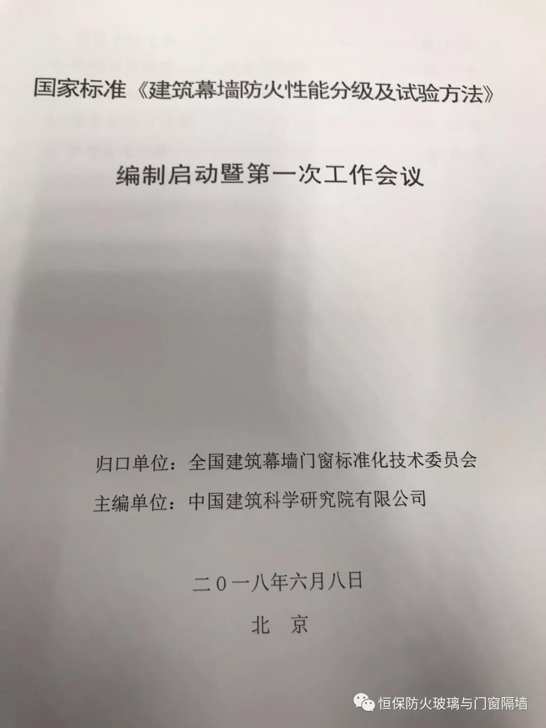 全國建筑幕墻門窗標準化技術委員會秘書處劉會濤高級工程師代表標委員會宣讀編制組名單,標準編制啟動會圓滿結束。鶴山恒保陳沃林總經(jīng)理也應邀參加了這次的國家標準編制。