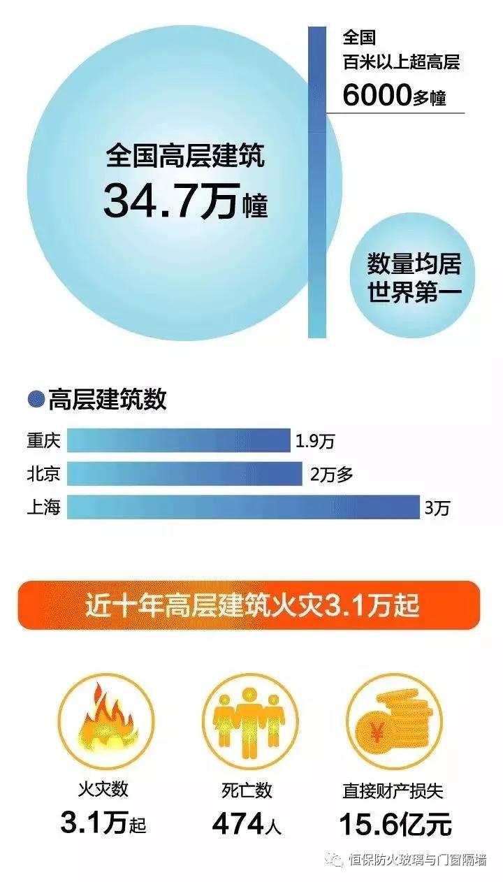 公安部消防局通報了中國高層建筑火災(zāi)的數(shù)據(jù)。數(shù)據(jù)顯示,全國擁有8層以上、超過24米的高層建筑34.7萬幢,百米以上高層6000多幢,數(shù)量均居世界前位。