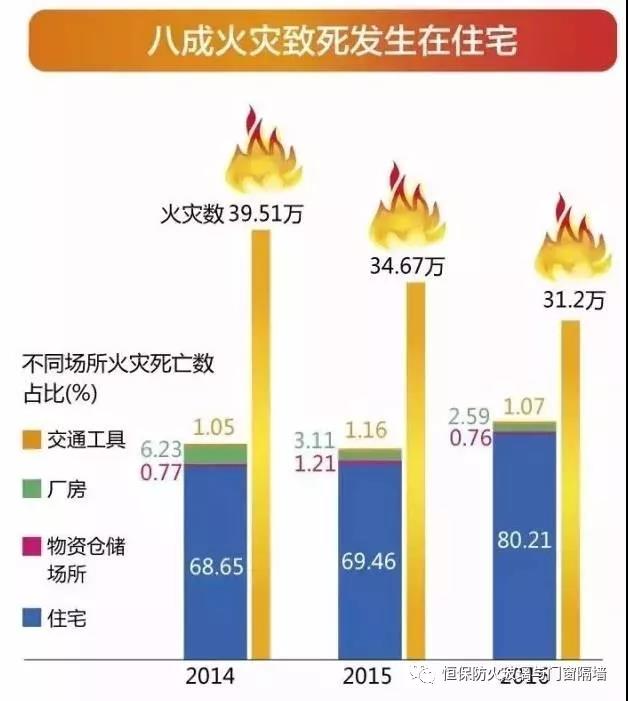 近十年全國共發(fā)生高層建筑火災(zāi)3.1萬起,死亡474人,直接財產(chǎn)損失15.6億元。近三年來,火災(zāi)致死發(fā)生在住宅的比例逐年升高,2016年有1269人在住宅火災(zāi)中死亡,占火災(zāi)致死總數(shù)的80.21%。
